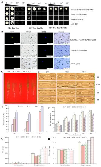 2.7. TaSnRK2.1 Protein Interacts with ABA-Responsive Transcription Factor TaABI1 to Negatively Impact Plant Drought Resistance