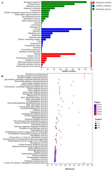 - Boyle, E.I.; Weng, S.; Gollub, J.; Jin, H.; Botstein, D.; Cherry, J.M.; Sherlock, G. GO: TermFinder-open source software for accessing Gene Ontology information and finding significantly enriched Gene Ontology terms associated with a list of genes. Bioinformatics 2004, 20, 3710–3715. [Google Scholar] [CrossRef] [PubMed]