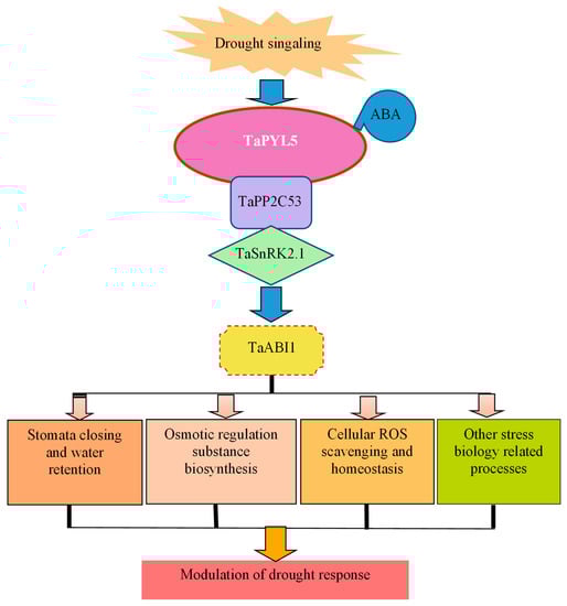 Zhang Y, Zhao Y, Hou X, Ni C, Han L, Du P, Xiao K. Wheat ABA Receptor TaPYL5 Constitutes a Signaling Module with Its Downstream Partners TaPP2C53/TaSnRK2.1/TaABI1 to Modulate Plant Drought Response. International Journal of Molecular Sciences. 2023; 24(9):7969. https://doi.org/10.3390/ijms24097969