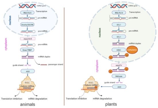2. Comparison of miRNA Biogenesis and Mechanisms in Plants and Insects