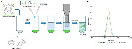 (A) Scheme of FC-PFC-NE preparation; (B) Size distribution of FC-PFC-NE determined by DLS.