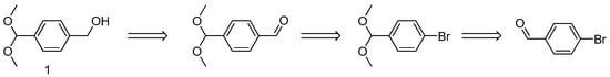 To avoid these problems, we suggested using another building block, ((dimethoxymethyl)phenyl)methanol 1, which could be obtained from commercially available bromoaldehydes (Scheme 3).