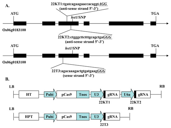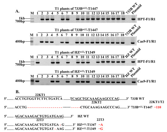 2.2. Characterization of OsRR22 T0 Mutant Plants