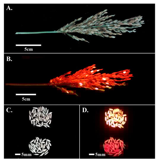 - Hiei, Y.; Ohta, S.; Komari, T.; Kumashiro, T. Efficient transformation of rice (Oryza sativa L.) mediated by Agrobacteriumand sequence analysis of the boundaries of the T-DNA. Plant J. 2014, 6, 271–282. [Google Scholar] [CrossRef] [PubMed]