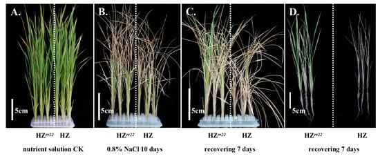 - Zhang, A.N.; Liu, Y.; Wang, F.M.; Li, T.F.; Chen, Z.H.; Kong, D.Y.; Bi, J.G.; Zhang, F.Y.; Luo, X.X.; Wang, J.H.; et al. Enhanced rice salinity tolerance via crispr/cas9-targeted mutagenesis of the osrr22 gene. Mol. Breed. 2019, 39, 47. [Google Scholar] [CrossRef]