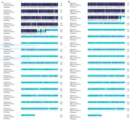 2.5. Analysis of the OsRR22 Amino Acid Sequence of 733Srr22-T1447-1 and HZrr22-T1349-3 Alleles