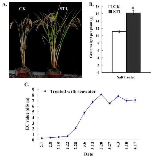 2.7. Development of the New Promising Third-Generation Hybrid Rice Line with Novel Salt Tolerance