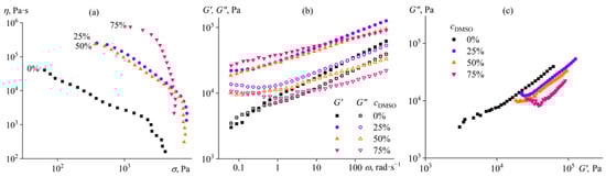 - Lv, Y.; Wu, J.; Zhang, J.; Niu, Y.; Liu, C.-Y.; He, J.; Zhang, J. Rheological Properties of Cellulose/Ionic Liquid/Dimethylsulfoxide (DMSO) Solutions. Polymer 2012, 53, 2524–2531. [Google Scholar] [CrossRef]
