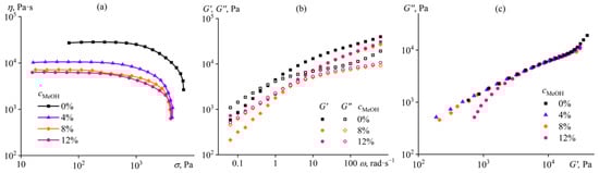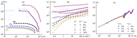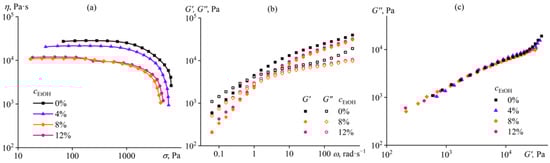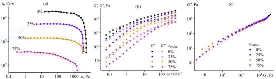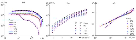 - Ilyin, S.O.; Malkin, A.Y.; Kulichikhin, V.G.; Denisova, Y.I.; Krentsel, L.B.; Shandryuk, G.A.; Litmanovich, A.D.; Litmanovich, E.A.; Bondarenko, G.N.; Kudryavtsev, Y.V. Effect of Chain Structure on the Rheological Properties of Vinyl Acetate–Vinyl Alcohol Copolymers in Solution and Bulk. Macromolecules 2014, 47, 4790–4804. [Google Scholar] [CrossRef]