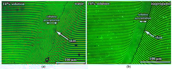 - Bang, Y.; Lee, S.; Park, J.; Cho, H. Effect of coagulation conditions on fine structure of regenerated cellulosic films made from cellulose/N-methylmorpholine-N-oxide/H2O systems. J. Appl. Polym. Sci. 1999, 73, 2681–2690. [Google Scholar] [CrossRef]