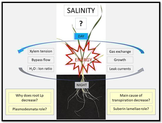 Lu, Y.; Fricke, W. Salt Stress—Regulation of Root Water Uptake in a Whole-Plant and Diurnal Context. Int. J. Mol. Sci. 2023, 24, 8070. https://doi.org/10.3390/ijms24098070