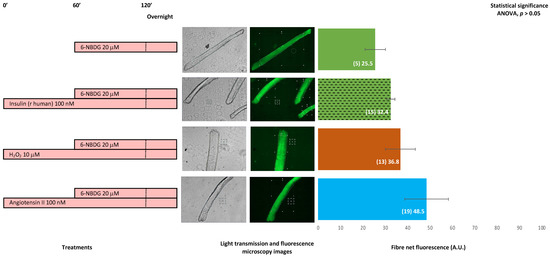 2.7. 6-NBDG/Glucose Uptake in Isolated Skeletal Muscle Fibres: Effects of Insulin, Hydrogen Peroxide, and Angiotensin II—6-NBDG Incubation Overnight
