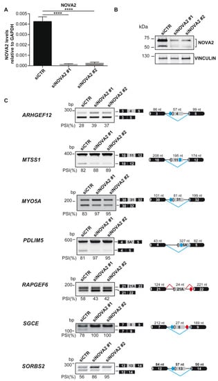 2.1. NOVA2 Overexpression Affects Several Splicing Switches in Angiogenesis Regulators