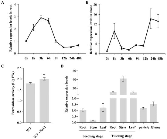 3.1. OsLPR5 and Ferroxidase Activities Are Induced under Salt Stress