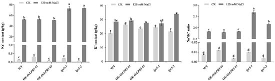 2.4. Mutation of OsLPR5 Mainly Influence Na+ Levels under NaCl Stress