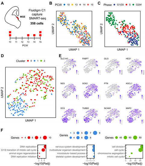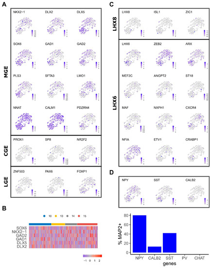 - Chen, Y.J.; Friedman, B.A.; Ha, C.; Durinck, S.; Liu, J.; Rubenstein, J.L.; Seshagiri, S.; Modrusan, Z. Single-cell RNA sequencing identifies distinct mouse medial ganglionic eminence cell types. Sci. Rep. 2017, 7, 45656. [Google Scholar] [CrossRef]