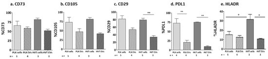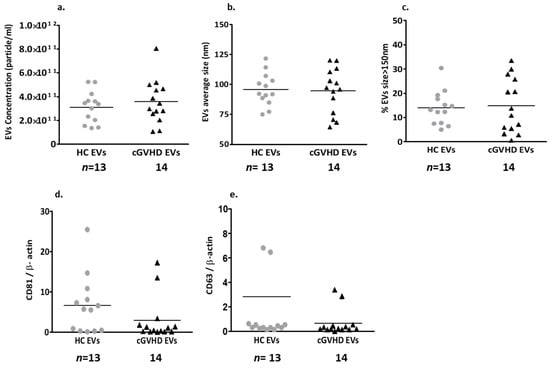 2.1. Characteristics of cGVHD Patient EVs Compared to EVs of Healthy Controls