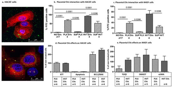 2.2.2. Interaction of Placental EVs with Dermal Cells