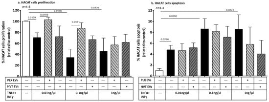 2.2.4. Effects of Placental EVs on Cytokine-Induced Keratinocyte Cell Functions
