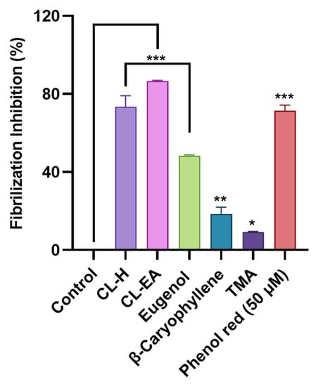 2.5. Clove Extract Reduced Aβ Oligomerization and Fibrilization