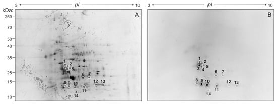 - Shevchenko, A.; Jensen, O.N.; Podtelejnikov, A.V.; Sagliocco, F.; Wilm, M.; Vorm, O.; Mortensen, P.; Shevchenko, A.; Boucherie, H.; Mann, M. Linking genome and proteome by mass spectrometry: Large-scale identification of yeast proteins from two dimensional gels. Proc. Natl. Acad. Sci. USA 1996, 93, 14440–14445. [Google Scholar] [CrossRef] [PubMed]
