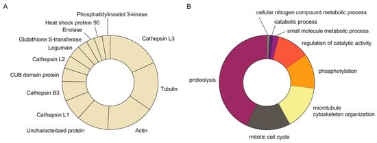 - Cwiklinski, K.; Robinson, M.W.; Donnelly, S.; Dalton, J.P. Complementary transcriptomic and proteomic analyses reveal the cellular and molecular processes that drive growth and development of Fasciola hepatica in the host liver. BMC Genom. 2021, 22, 46. [Google Scholar] [CrossRef] [PubMed]
