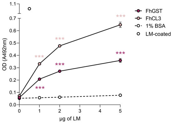 Chicago/Turabian StyleSerrat, Judit, María Torres-Valle, Marta López-García, David Becerro-Recio, Mar Siles-Lucas, and Javier González-Miguel. 2023. "Molecular Characterization of the Interplay between Fasciola hepatica Juveniles and Laminin as a Mechanism to Adhere to and Break through the Host Intestinal Wall" International Journal of Molecular Sciences 24, no. 9: 8165. https://doi.org/10.3390/ijms24098165