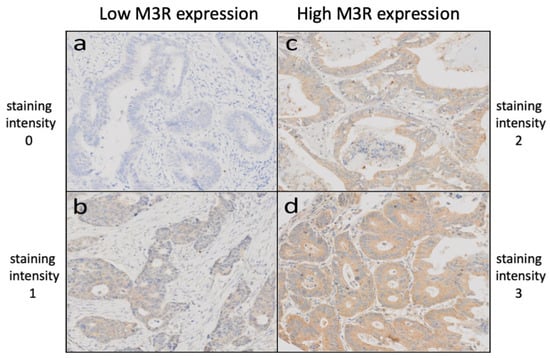 Lobbes, L.A.; Schütze, M.A.; Droeser, R.; Arndt, M.; Pozios, I.; Lauscher, J.C.; Hering, N.A.; Weixler, B. Muscarinic Acetylcholine Receptor M3 Expression and Survival in Human Colorectal Carcinoma—An Unexpected Correlation to Guide Future Treatment? Int. J. Mol. Sci. 2023, 24, 8198. https://doi.org/10.3390/ijms24098198