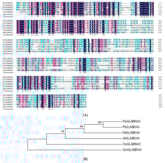 4.3. PeGLABRA3 Sequence and Phylogenetic Analysis