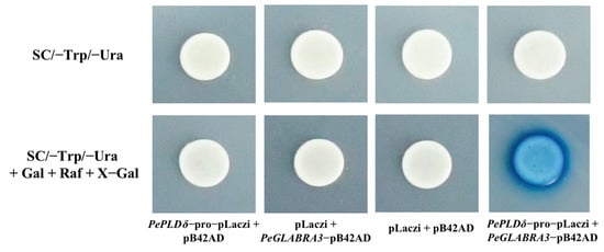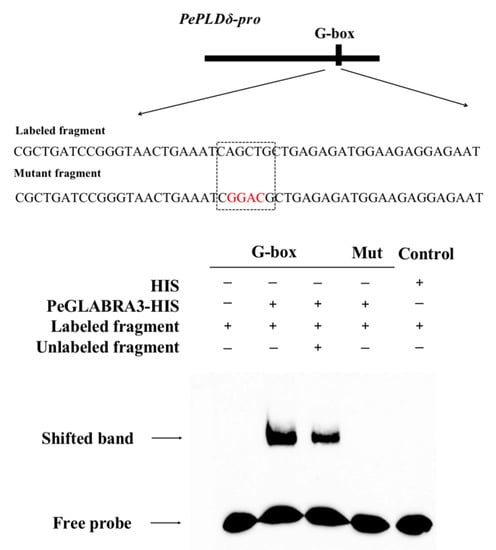 2.7. PeGLABRA3 Binds to the PePLDδ Promoter