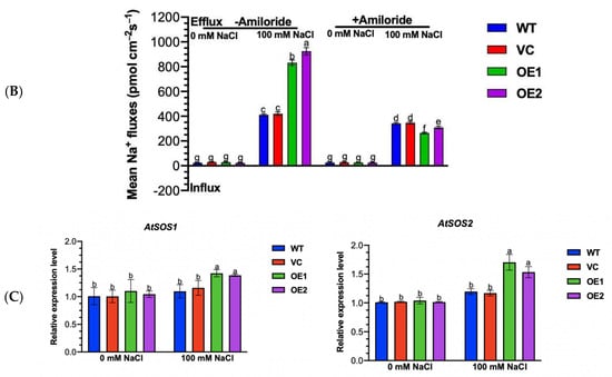 - Krishnamurthy, P.; Vishal, B.; Khoo, K.; Rajappa, S.; Loh, C.S.; Kumar, P.P. Expression of AoNHX1 increases salt tolerance of rice and Arabidopsis, and bHLH transcription factors regulate AtNHX1 and AtNHX6 in Arabidopsis. Plant Cell Rep. 2019, 38, 1299–1315. [Google Scholar] [CrossRef]