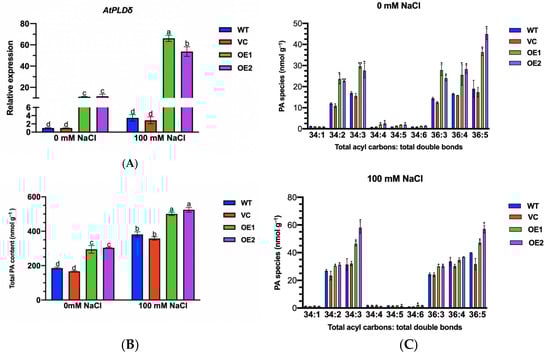 - Ji, T.; Li, S.; Huang, M.; Di, Q.; Wang, X.; Wei, M.; Shi, Q.; Li, Y.; Gong, B.; Yang, F. Overexpression of cucumber phospholipase D alpha gene (CsPLDα) in tobacco enhanced salinity stress tolerance by regulating Na+–K+ balance and lipid peroxidation. Front. Plant Sci. 2017, 8, 499. [Google Scholar] [CrossRef] [PubMed]