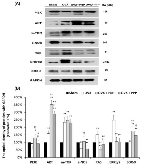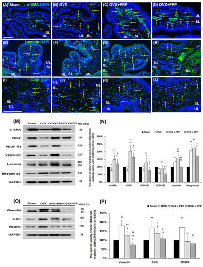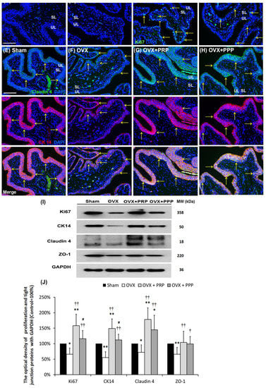 2.5. Effects of PRP Instillation on Improving OVX-Induced Pathological Alteration
