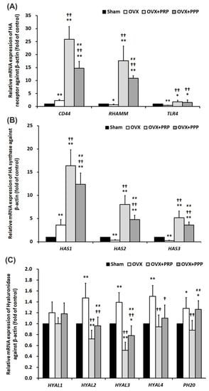 2.8. The PRP Instillation Modulated HA Synthesis and Degradation