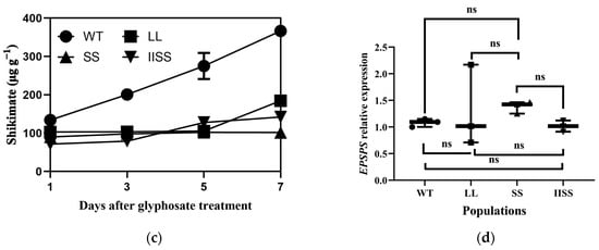 - Sammons, R.D.; You, J.; Qi, Y.; Flasinski, S.; Kavanaugh, C.; Washam, J.; Ostrander, E.; Wang, D.; Heck, G. Evaluation of glyphosate resistance in Arabidopsis thaliana expressing an altered target site EPSPS. Pest Manag. Sci. 2018, 74, 1174–1183. [Google Scholar] [CrossRef]