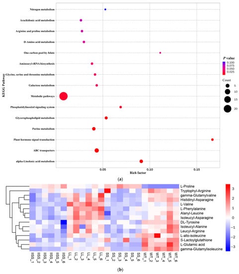 - Ren, Y.; Miao, M.; Meng, Y.; Cao, J.; Fan, T.; Yue, J.; Xiao, F.; Liu, Y.; Cao, S. DFR1-mediated inhibition of proline degradation pathway regulates drought and freezing tolerance in Arabidopsis. Cell Rep. 2018, 23, 3960–3974. [Google Scholar] [CrossRef]