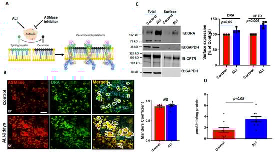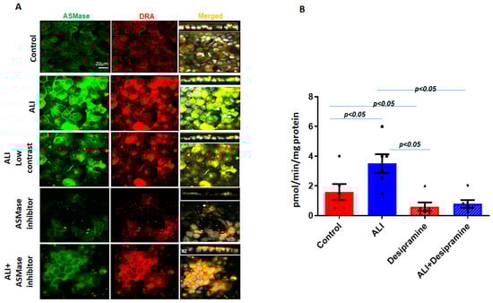 2.2. ALI Culture Causes an Increase in ASMase Activity and Colocalization with DRA