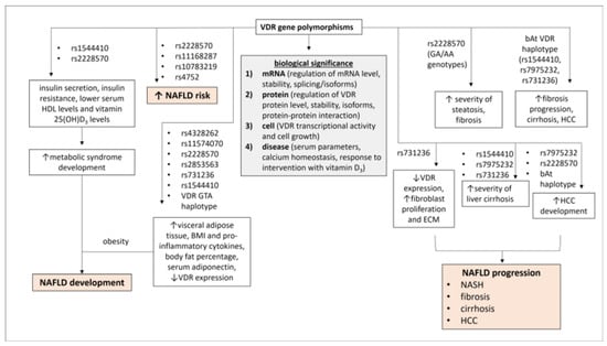 Gene Polymorphisms and Biological Effects of Vitamin D Receptor on Nonalcoholic Fatty Liver Disease Development and Progression