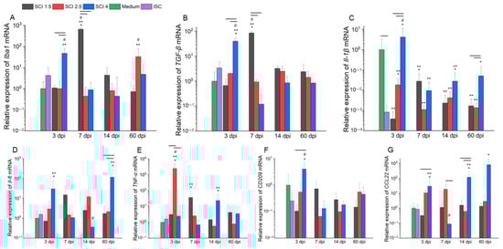 - Byrnes, K.R.; Garay, J.; Di Giovanni, S.; De Biase, A.; Knoblach, S.M.; Hoffman, E.P.; Movsesyan, V.; Faden, A.I. Expression of two temporally distinct microglia-related gene clusters after spinal cord injury. Glia 2006, 53, 420–433. [Google Scholar] [CrossRef]