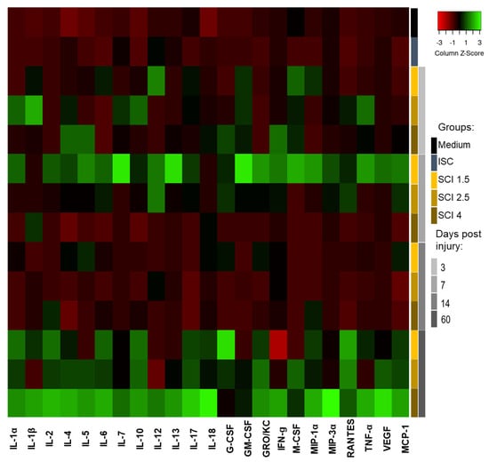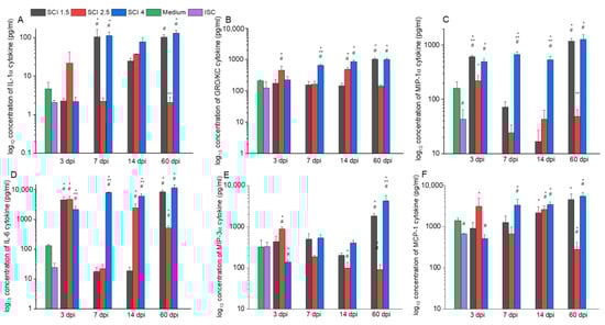 - Mukhamedshina, Y.O.; Akhmetzyanova, E.R.; Martynova, E.V.; Khaiboullina, S.F.; Galieva, L.R.; Rizvanov, A.A. Systemic and local cytokine profile following spinal cord injury in rats: A multiplex analysis. Front. Neurol. 2017, 8, 581. [Google Scholar] [CrossRef] [PubMed]
