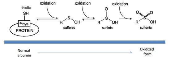 - Bruschi, M.; Candiano, G.; Santucci, L.; Ghiggeri, G.M. Oxidized albumin. The long way of a protein of uncertain function. Biochim. Biophys. Acta (BBA)—Gen. Subj. 2013, 1830, 5473–5479. [Google Scholar] [CrossRef]