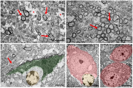 - Ferguson, B.; Matyszak, M.K.; Esiri, M.M.; Perry, V.H. Axonal damage in acute multiple sclerosis lesions. Brain 1997, 120 Pt 3, 393–399. [Google Scholar] [CrossRef]