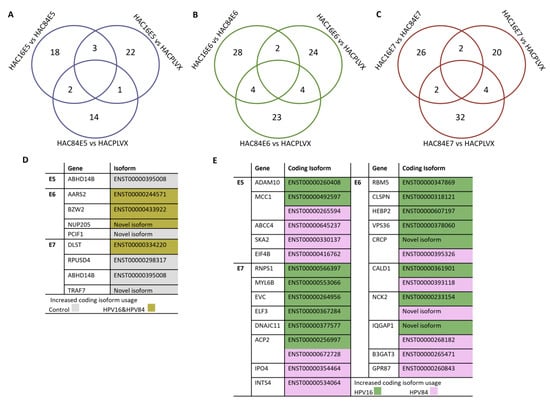 Splicing Characterization and Isoform Switch Events in Human Keratinocytes Carrying Oncogenes from High-Risk HPV-16 and Low-Risk HPV-84