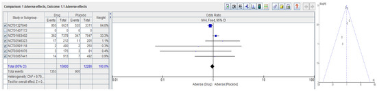 Figure 3. Meta-analysis regarding the adverse effects of various drugs versus placebo in atherosclerosis.