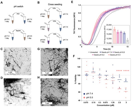 3.2. Effect of pH Exchange and Cross-Seeding on Aβ40 Aggregation