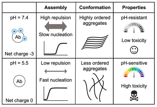 - Su, Y.; Chang, P.T. Acidic PH Promotes the Formation of Toxic Fibrils from β-Amyloid Peptide. Brain Res. 2001, 893, 287–291. [Google Scholar] [CrossRef]