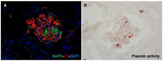 - Uchida, T.; Oda, T. Glomerular Deposition of Nephritis-Associated Plasmin Receptor (NAPlr) and Related Plasmin Activity: Key Diagnostic Biomarkers of Bacterial Infection-related Glomerulonephritis. Int. J. Mol. Sci. 2020, 21, 2595. [Google Scholar] [CrossRef]