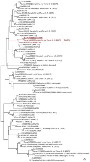 - Campbell, L.; Turner, S.R. A comprehensive analysis of RALF proteins in green plants suggests there are two distinct functional groups. Front. Plant Sci. 2017, 8, 37. [Google Scholar] [CrossRef]