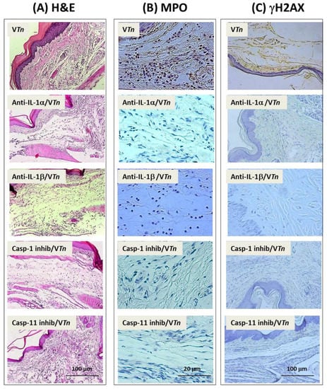 2.3. VTn-Induced Wound Is Associated with IL-1α and IL-1β via Activation of Inflammatory Caspases