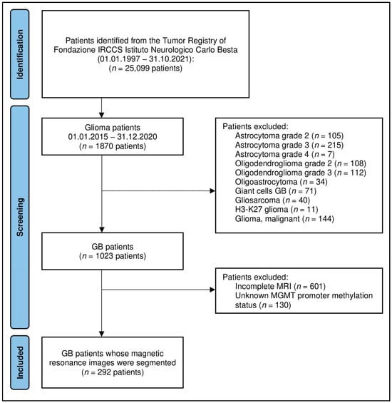 - Xi, Y.-b.; Guo, F.; Xu, Z.-l.; Li, C.; Wei, W.; Tian, P.; Liu, T.-t.; Liu, L.; Chen, G.; Ye, J.; et al. Radiomics signature: A potential biomarker for the prediction of MGMT promoter methylation in glioblastoma. J. Magn. Reson. Imaging 2018, 47, 1380–1387. [Google Scholar] [CrossRef]